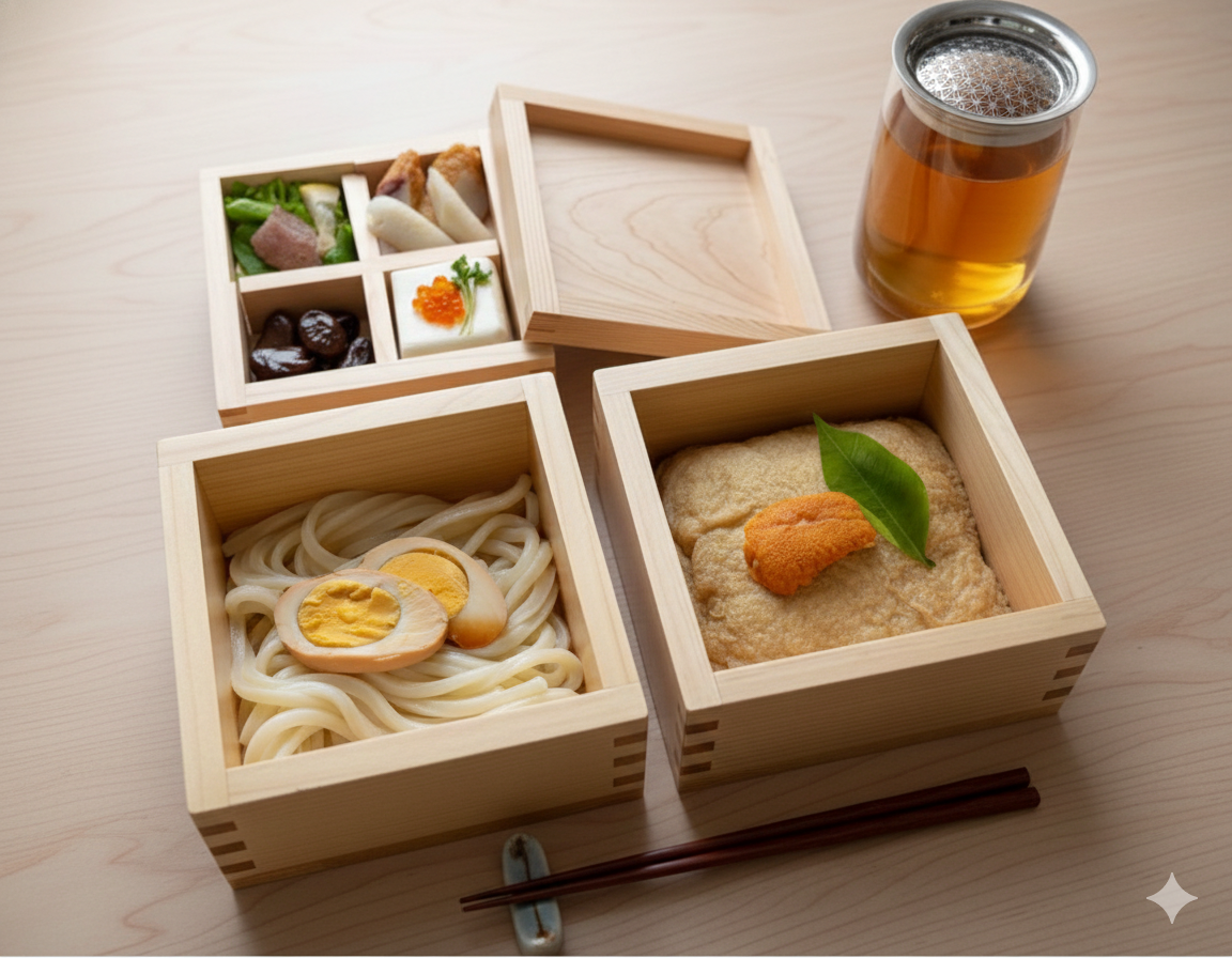 ・讃岐オリーブ牛雲丹うどんのお重